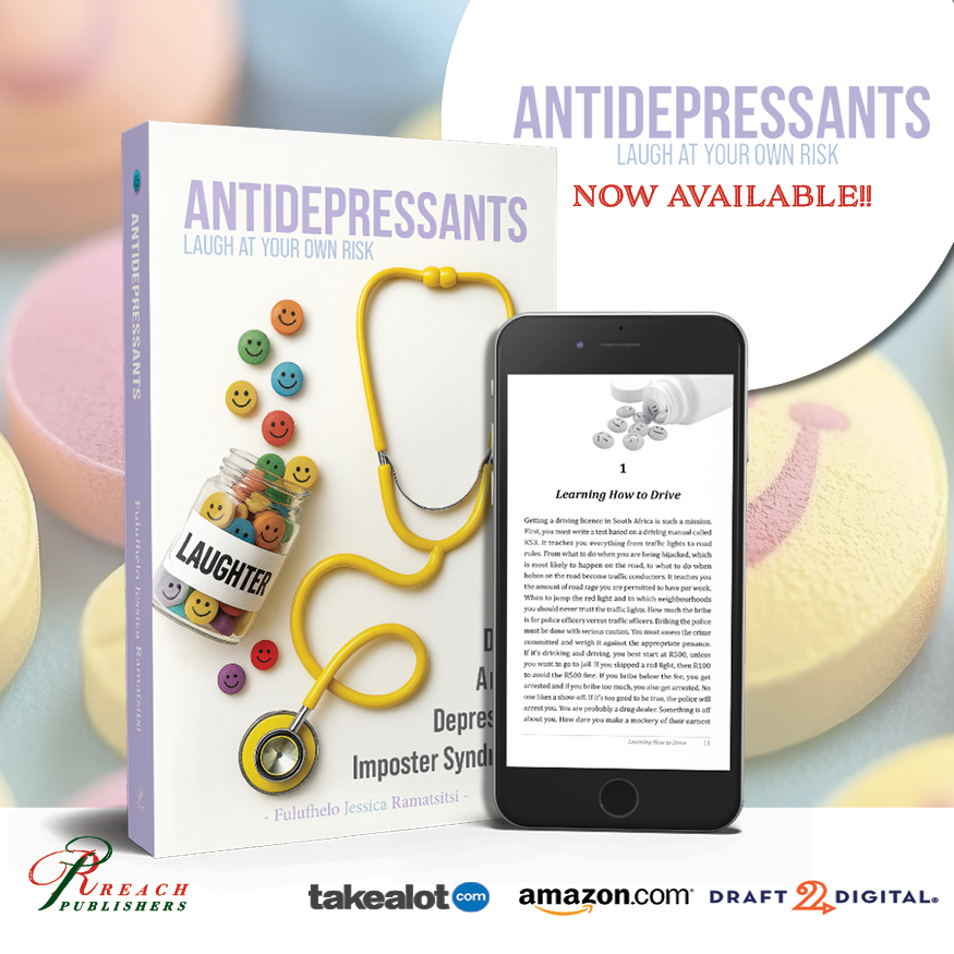 Antidepressant – laugh at your own risk” is a somewhat satirical piece that pillages through the dark mental health struggles she endured to draw out meaning, purpose and light in the end. She is an aggressive optimistic who believes that humans were profoundly created with the ability to be phenomenal at the height of adversity. Pain is the greatest propellant to success. After all, being mediocre and a conformist is overrated. Her sense of humour in this book can be deemed to be both dark and light. Appealing and somewhat disturbing. Her craft in figures of speech, diction and articulation is weaved intentionally into her childhood memories as she takes the audience into her nostalgic journey of being young, innocent, and carefree. Whilst she embellishes on the adventurous upbringing from a Christian home, she relinquishes encouragement, a word of hope towards the finality of every chapter. This is not a self-pity memoir, it is a note to self, to hold on to the best memories when you are faced with the worst reality.